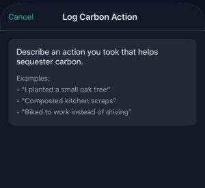 You simply describe what you’ve done in natural language: “planted three oak saplings in the garden,” “started composting kitchen scraps,” or “bought a second-hand jacket.”